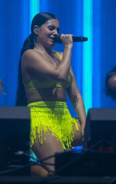 Mabel On Stage in a Bra
