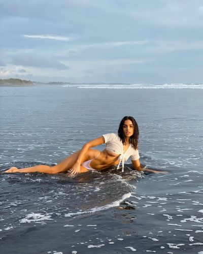 Olivia Culpo Braless Boobs in a See Through Wet Top